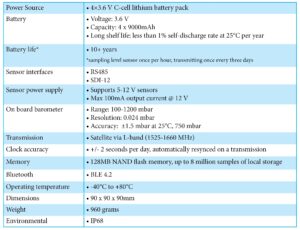 - In-built atmospheric pressure sensor for in head correction rated at 100m submersion which enables flood monitoring as part of your suite of parameters